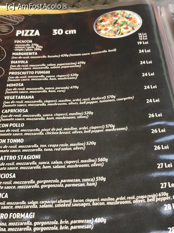 [P03] preturile la pizza sunt in jurul a 25 ron la una portie cu diametru 30 cm - ok!