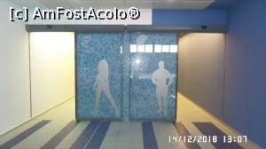 [P08] Termalum Spa, Timișoara. Zona cu uscătoarele de păr. În față intrarea la zona spa
