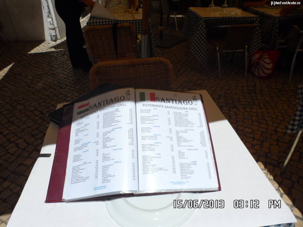 [P05] pentru a va face o impresie asupra preturilor meniul restaurantului Santiago situat in zona pietei Rossio din centrul istoric al Lisabonei