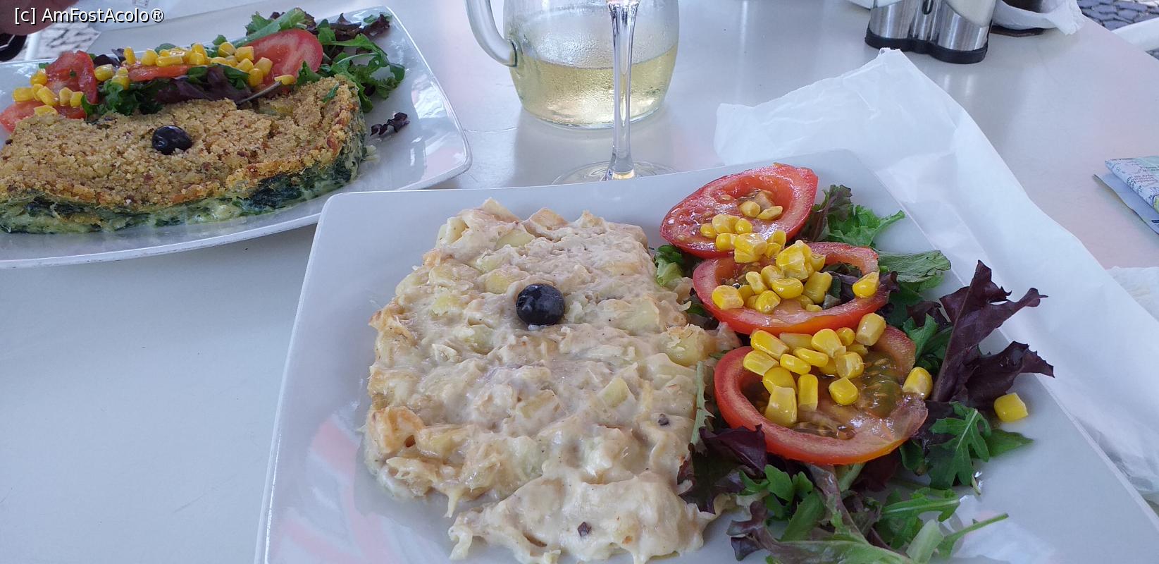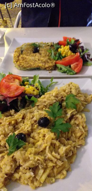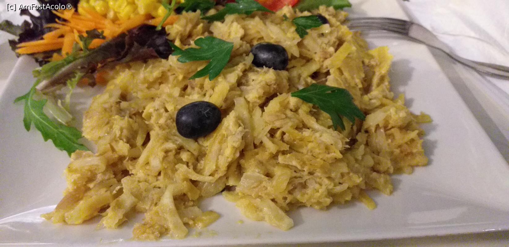 [P10] Bacalhau á Bras(plan apropiat) şi bacalhau com Natas (plan îndepărtat) la Leitaria Académica