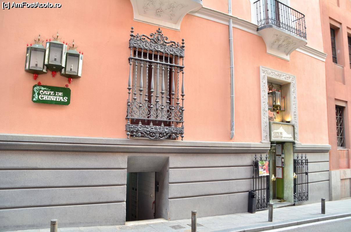 [P01] Cafe De Chinitas - palatul din stânga; pe cel din dreapta este o placă de monument turistic ce indică faptul că până prin sec. XIX aici era sediul Inchiziției, temuta organizație criminală bisericească