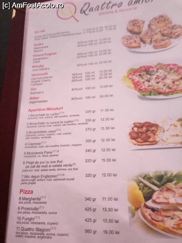 [P22] Pizzeria restaurant Quattro Amici din Sighisoara, meniul