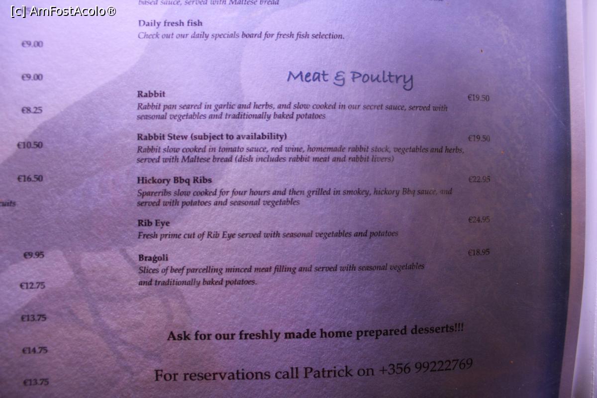 [P22] Sliema, Restaurantul Il Merill, Meniul, Preparate din carne și Pasăre