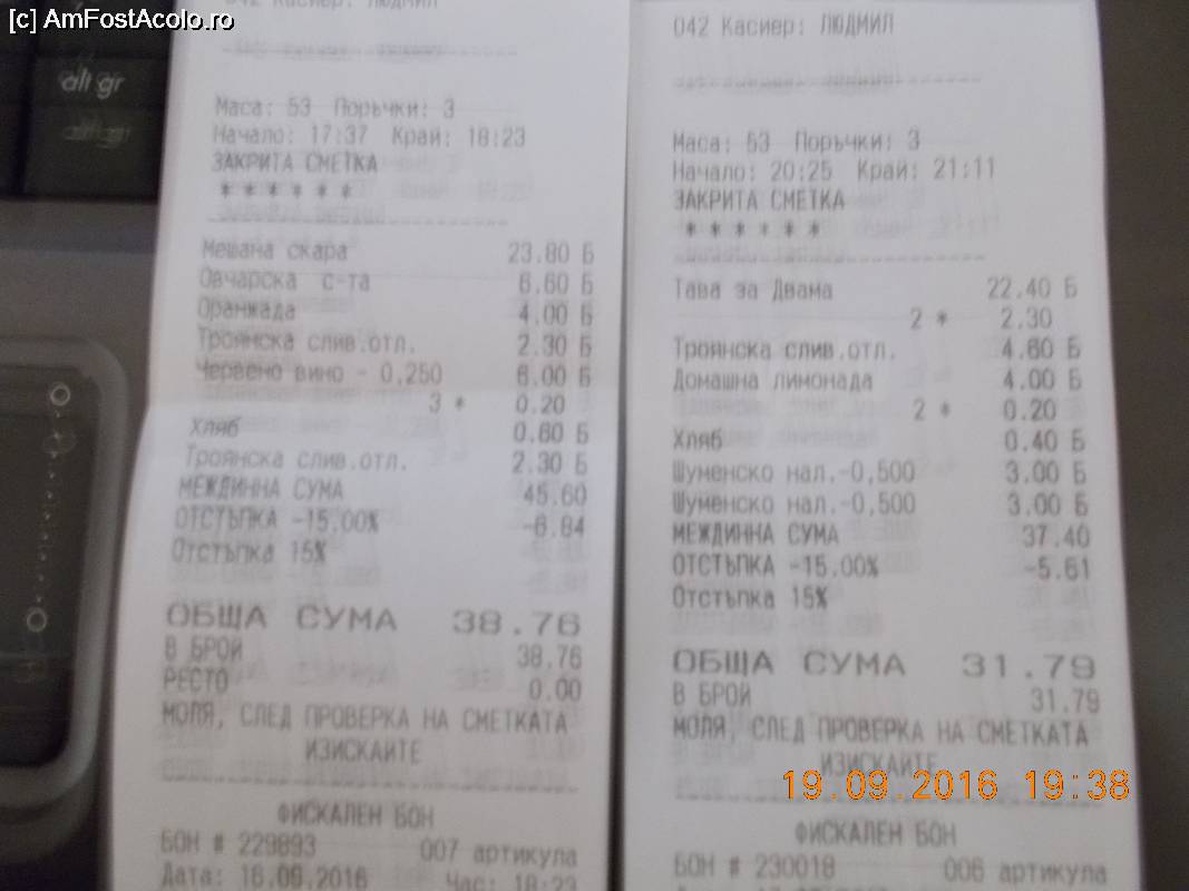 [P17] Chitantele pentru cele doua mese servite la Ivan Asen.