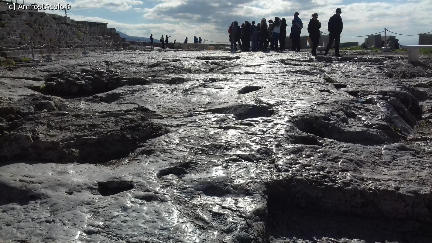 [P38] Sus pe Acropole: câţi oameni or fi trecut pe aici! Marmura e lucioasă în soare