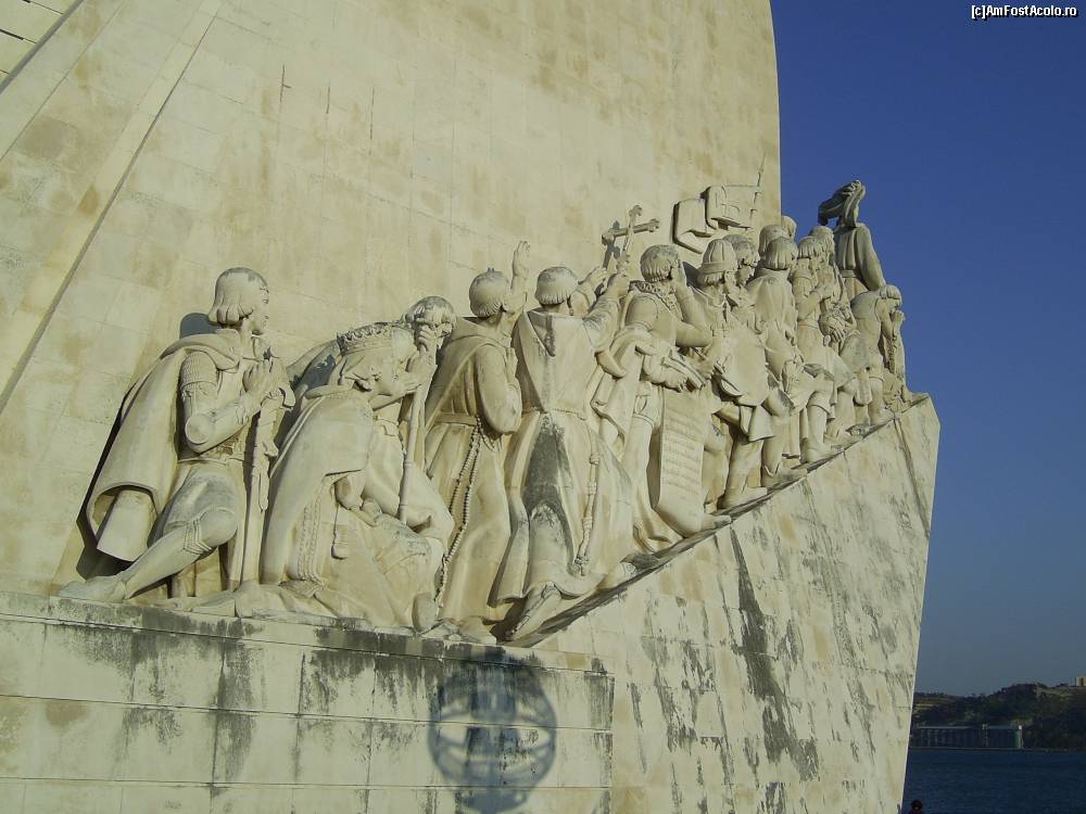 [P01] Lisabona - Detaliu din Monumentul navigatorilor portughezi. Printul Henric Navigatorul si Regina Felipa, mama sa, alaturi de calugari, marinari si restul echipajului.