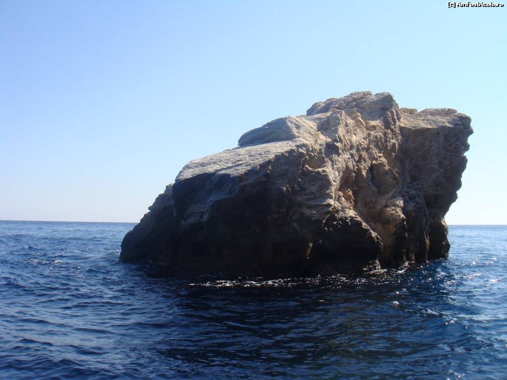 [P07] 7. Aceiași stâncă vulcanică văzută de pe plaja din Perissa.