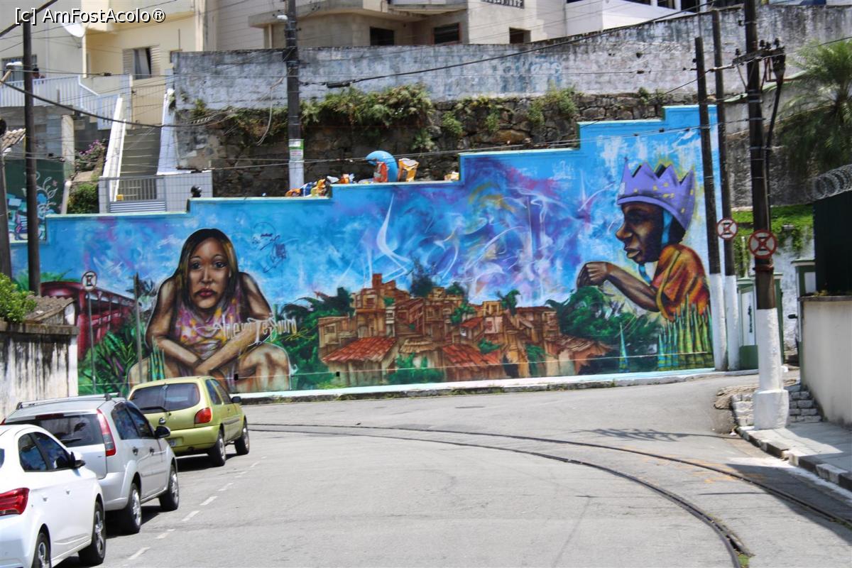 [P51] Santos, Pictură murală, spre drumul ce trece printr-o favelă dar și la Bondinho ce urcă la Monte Serrat, poză realizată din tramvai