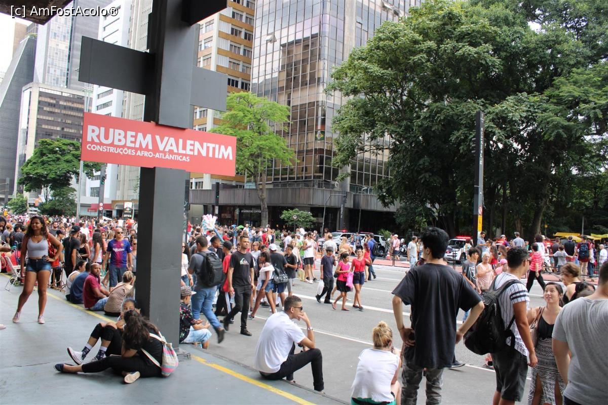 [P32] Sao Paulo, Avenida Paulista duminica, se merge la MASP, reclamă la expoziția lui Rubem Valentim