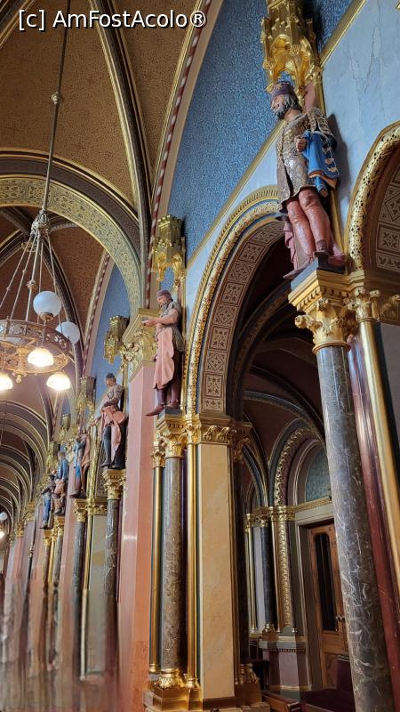 [P14] Am urcat pe scara XVII, una dintre cele 4 scari des folosite de vizitatori, denumita "Scara de Aur", datorita celor 40 kg de aur de 24 karate folosite pentru a o orna. Peretii scarii sunt acoperiti cu marmura artificiala, iar flora Ungariei apare in elementele decorative, macul, pe balustrada din fier forjat si vita de vie pe bolta aurita.
