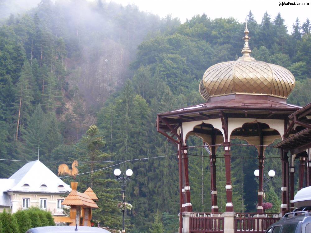 [P02] Slanic in stanga intrarea la Crama - cu cocosul de lemn si in dreapta foisorul de la cazinou - vederea este din spate stanga a cazinoului