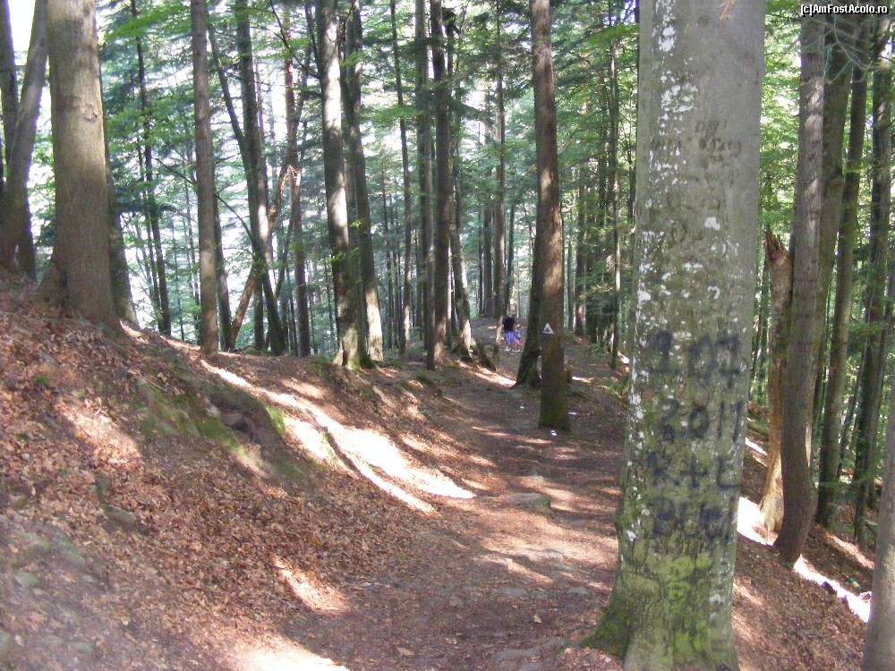 [P08] Slanic, padurea pe traseul in urcare, se vad urme pe copac lasate de cei care vor sa para "nepieritori"
